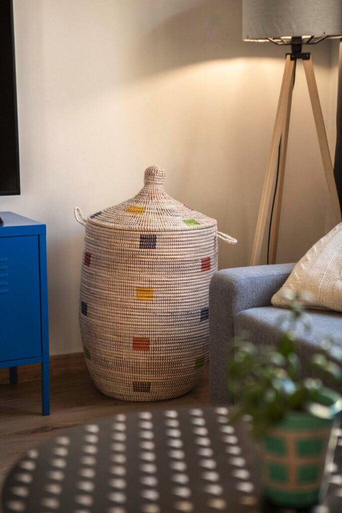 Muy luminoso, con cama doble grande y cabecero original reciclado, escritorio, tv y ropero. Baño privado.