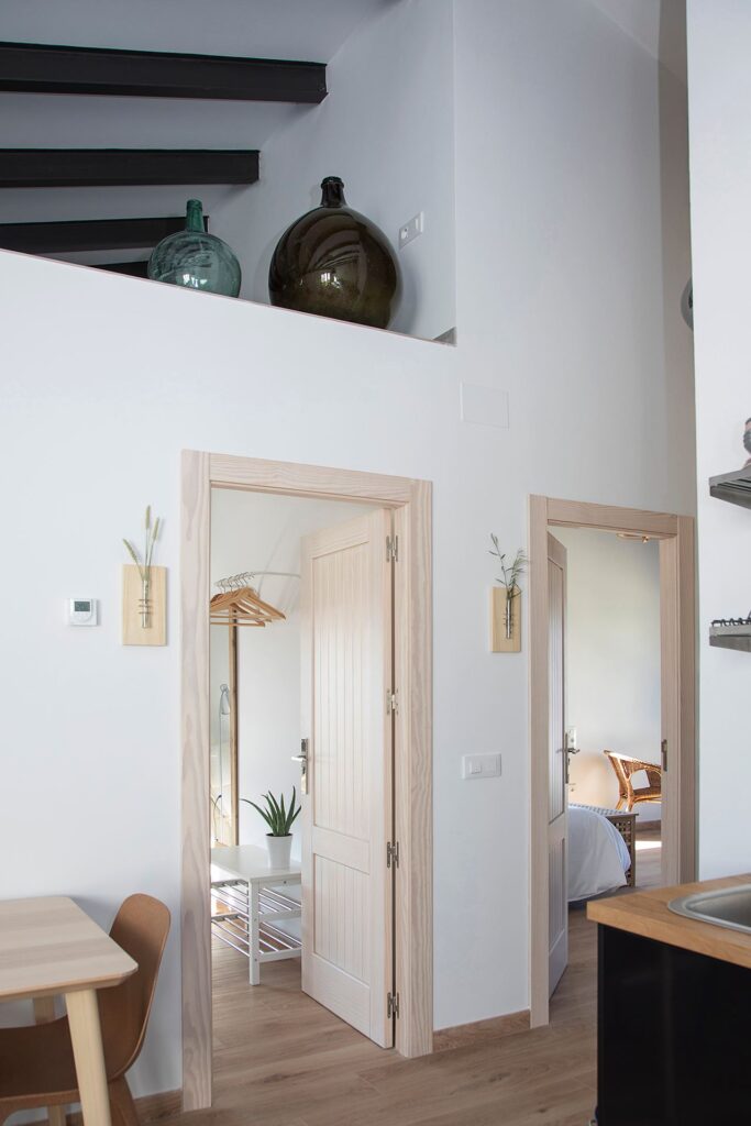 El dormitorio Tomillo es un espacio luminoso, sereno y cuidadosamente decorado para ofrecer una experiencia de descanso única. Su estilo combina la calidez de la madera natural con tonos frescos y detalles artesanales que evocan la esencia del entorno rural.